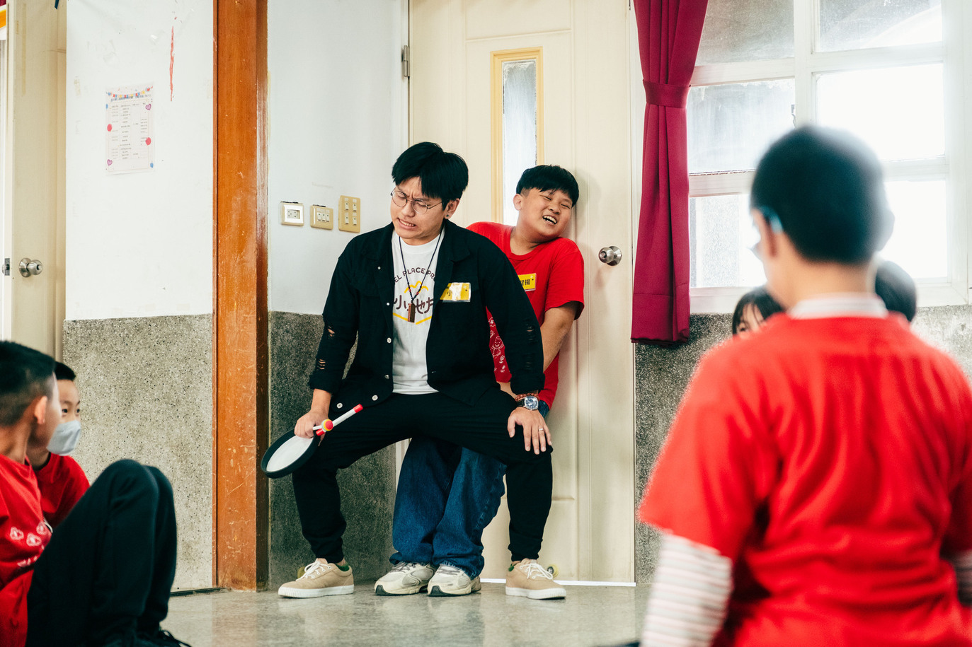 負責永安國小藝術教學的是小熊老師與米奇老師。小熊老師過去曾在高中任教,因參與阮劇團的培訓而踏入戲劇教育。他擅長與孩子打成一片,總能在課堂中抓住適合時機與每位學生互動,讓孩子感受到自己有被重視。