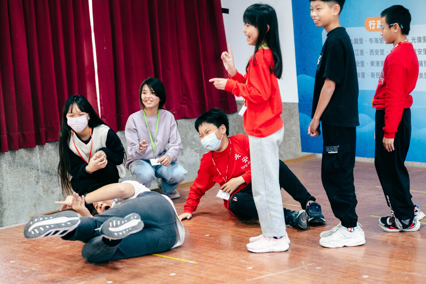隨著課程推進,孩子的變化逐漸明朗。有些人在肢體表現上大方奔放;高年級學生雖然起初較為保留,卻能在任務型活動中主動陪伴年幼同學,給予支持;原本容易縮起來的孩子即使仍會緊張怯場,卻已能直接與老師有眼神交流,表達自己暫時跨不出那一步的訊號。