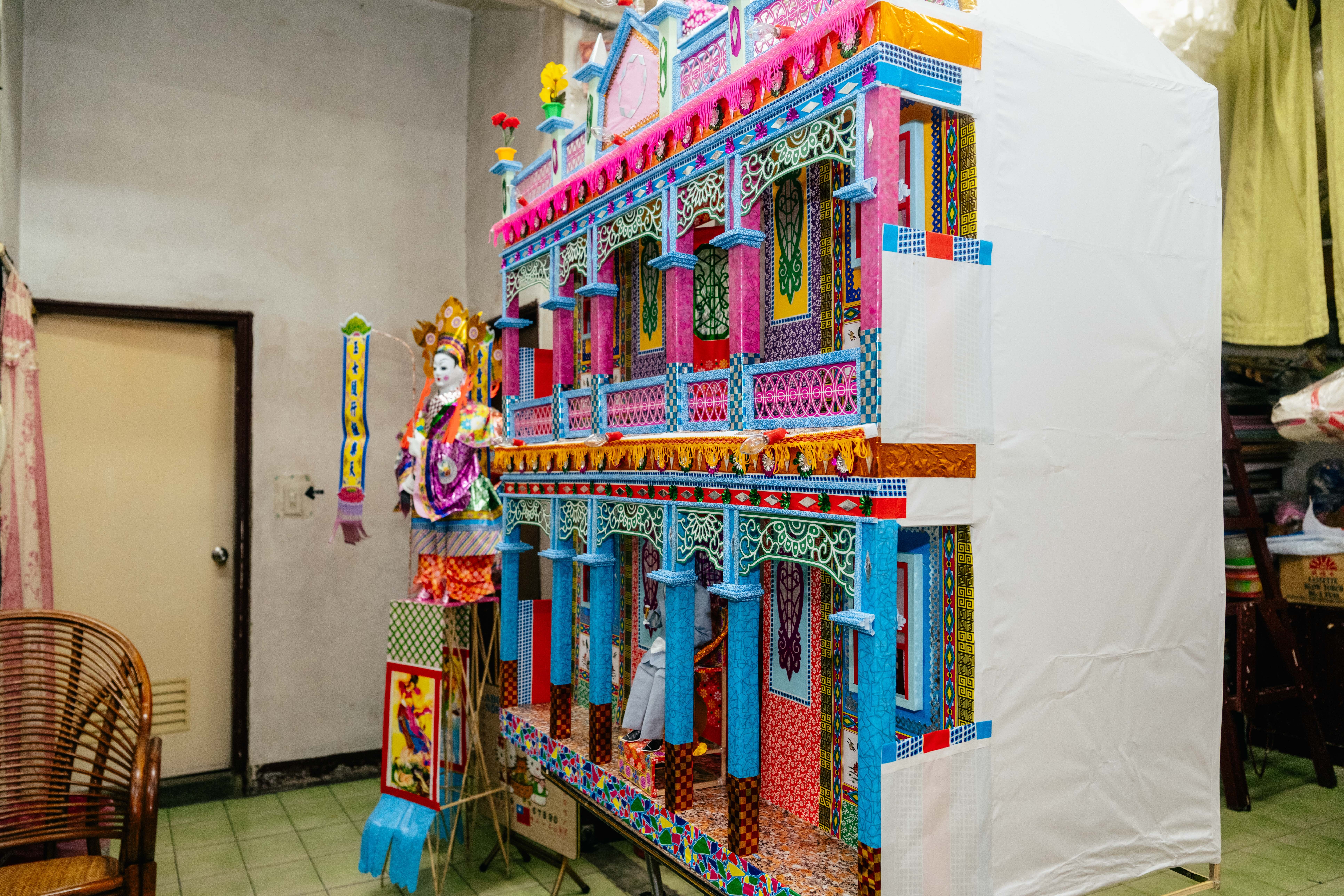 到了宛瑩這一代,她認為最需要耐心的是客製化溝通。一般小型靈厝製作約二週,若需重新設計,製程可能拉長至三到六個月。由於大眾對糊紙產業陌生,宛瑩需要提供大量案例照片協助理解製作程度。