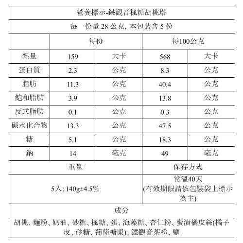 鐵觀音楓糖胡桃塔5入 (蛋奶素,常溫保存40天)