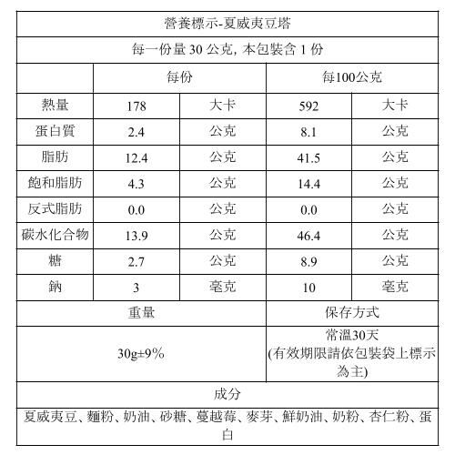 夏威夷豆塔1入  (蛋奶素,常溫保存30天)