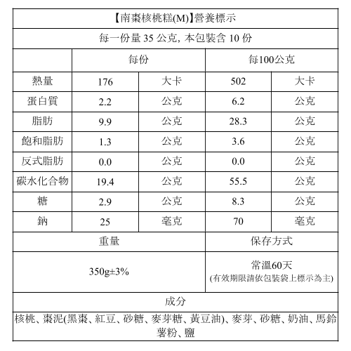內含花生、芝麻、蛋、奶製品、堅果、含麩質之穀物製品,不適合其過敏體質者食用