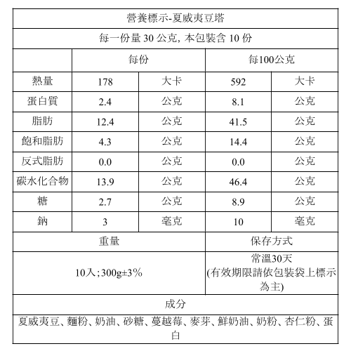 夏威夷豆塔10入x1 (蛋奶素,常溫保存30天,寄出時會有23天以上效期❗)