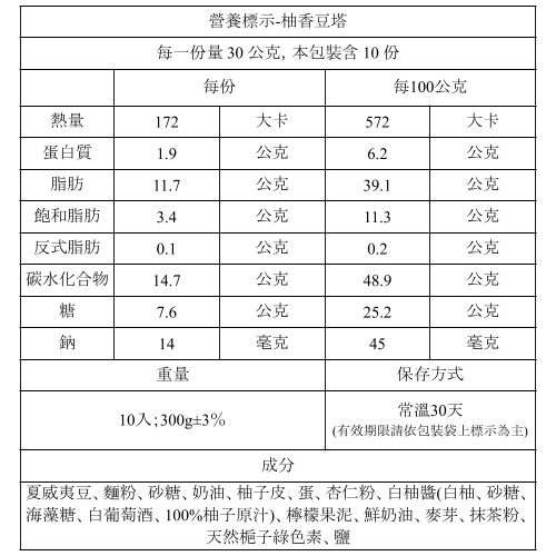 柚香豆塔10入x1  (蛋奶素,常溫保存30天,寄出時會有23天以上效期❗)